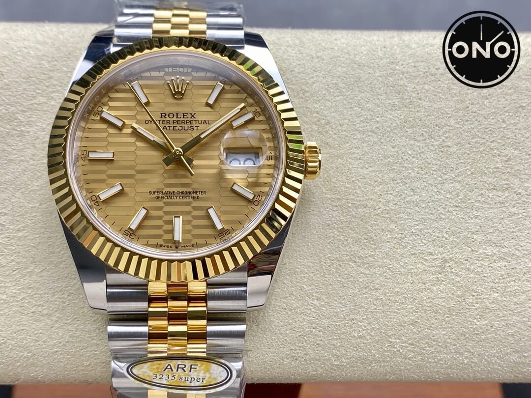 ONO ARF Rolex Datejust 126333 Swiss 3235 41mm Golden Dial 18k Yellow Gold on 904L SS Case Gain Weight