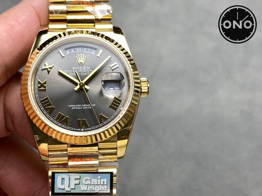Home Rolex Day Date ONO QF Rolex Day-Date 128238 Asian 2836 36mm Slate-Gray Dial 18k Yellow Gold Case Gain Weight